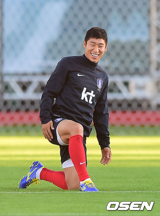 19일 오전(이하 한국시간) 홍명보 감독이 이끄는 축구국가대표팀이 브라질 이구아수의 페드로 바소경기장에서 회복 훈련을 가졌다. 훈련 중 이근호가 환하게 웃고 있다.