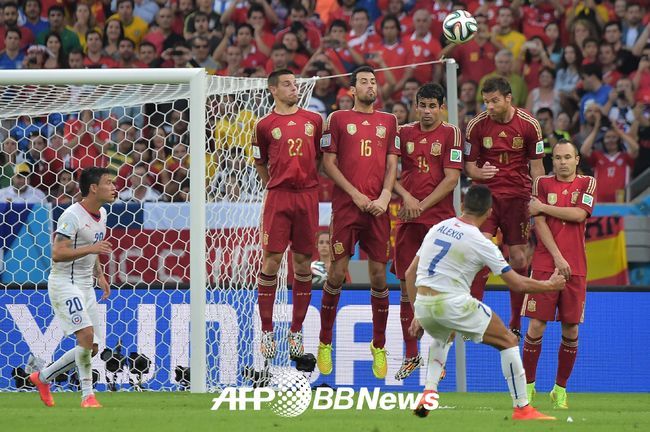 스페인은 19일(이하 한국시간) 브라질 리우 데 자네이루의 에스타디오 두 마라카낭에서 열린 2014 브라질월드컵 조별리그 B조 2차전 칠레와 경기서 0-2로 패했다. 이날 패배로 2패를 기록한 스페인은 16강 탈락을 확정지었다.