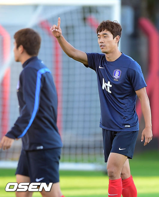 19일 오전(이하 한국시간) 홍명보 감독이 이끄는 축구국가대표팀이 브라질 이구아수의 페드로 바소경기장에서 회복 훈련을 가졌다. 훈련 중 박주영이 동료들에게 사인을 보내고 있다.