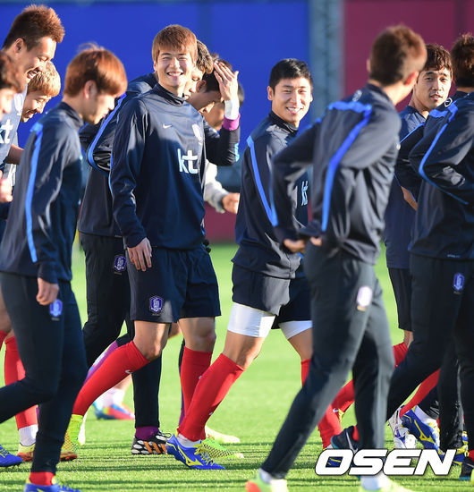 19일 오전(이하 한국시간) 홍명보 감독이 이끄는 축구국가대표팀이 브라질 이구아수의 페드로 바소경기장에서 회복 훈련을 가졌다. 대표팀 선수들이 그라운드 위로 나오며 미소짓고 있다.