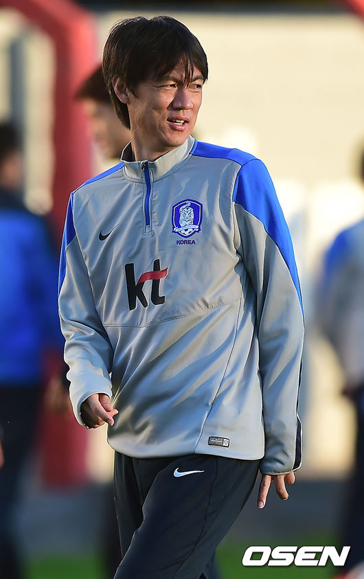 19일 오전(이하 한국시간) 홍명보 감독이 이끄는 축구국가대표팀이 브라질 이구아수의 페드로 바소경기장에서 회복 훈련을 가졌다. 홍명보 감독이 선수들을 바라보며 미소짓고 있다.