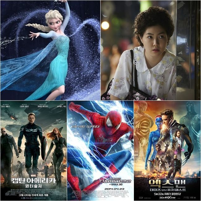 애니메이션 최초로 천만관객을 돌파한 '겨울왕국'과 800만 관객을 돌파하며 돌풍을 일으킨 영화 '수상한 그녀'가 올 초를 책임, 이후 '어메이징 스파이더맨2', '캡틴아메리카:윈터솔져' 그리고 현재 상영 중인 '엑스맨:데이즈 오브 퓨처 패스트' 등 다양한 히어로들이 3,4,5월을 각각 책임진 것.