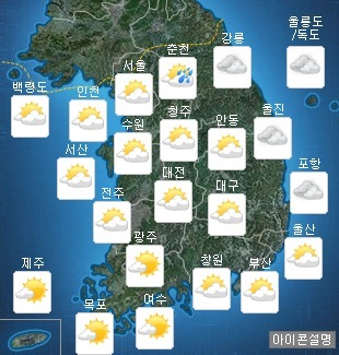 낮 최고기온은 21도에서 31도로 어제와 비슷하고, 미세먼지(PM10) 농도는 전국이 보통(일평균 31~80㎍/㎥)이다.