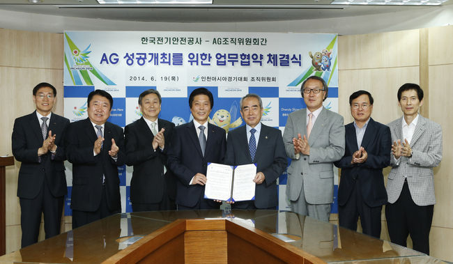 2014 인천아시아경기대회 조직위원회(위원장 김영수)는 19일 송도 미추홀타워 조직위 영상회의실에서 한국전기안전공사(사장 이상권)와 인천아시안게임의 성공적 개최를 위한 업무협약을 체결했다.