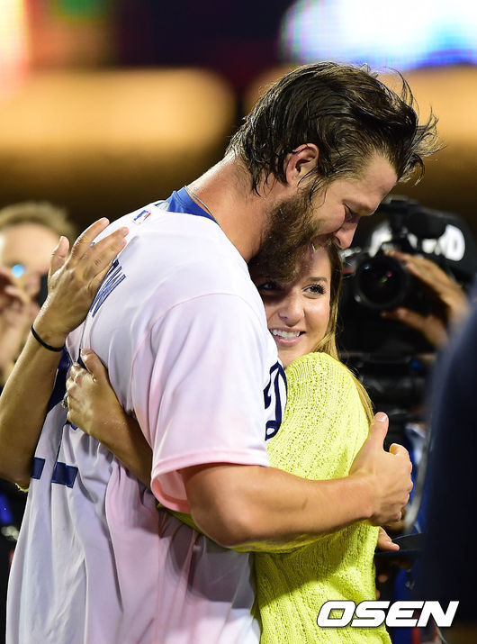 커쇼,'노히트 노런 후 아내와 뜨거운 포옹'
