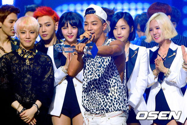 19일 오후 서울 상암동 CJ E&M에서 진행된 케이블채널 Mnet'엠카운트다운'(이하 엠카) 생방송에서 빅뱅 태양이 1위 소감을 말하고 있다.