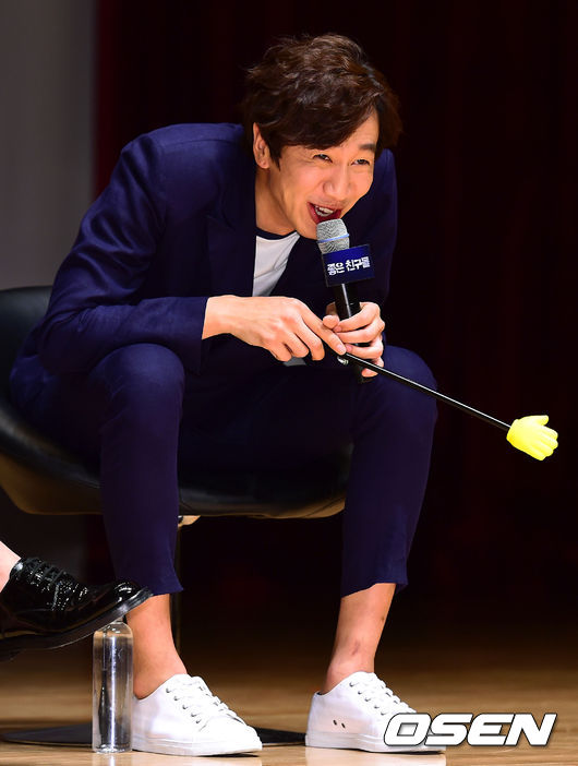 19일 오후 서울 성신여대 미아운정 그린캠퍼스에서 진행된 영화 '좋은 친구들' 쇼케이스에서 실물보다 더 잘생긴 배우는? 질문에 지목을 당한 이광수가 미소짓고 있다.