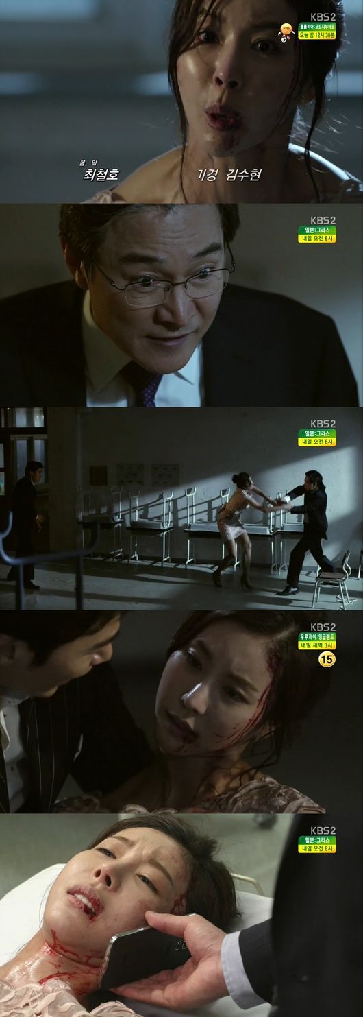 19일 방송된 KBS 2TV 수목드라마 '골든크로스'(극본 유현미 극본, 연출 홍석구 이진서) 최종회에는 강도윤(김강우 분)을 지키기 위해 대신 총에 맞은 홍사라(한은정 분)의 모습이 전파를 탔다.