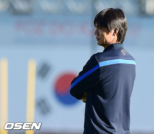 20일 오전(이하 한국시간) 홍명보 감독이 이끄는 축구국가대표팀이 브라질 이구아수의 페드로 바소경기장에서 훈련을 가졌다. 홍명보 감독이 생각에 잠겨있다.