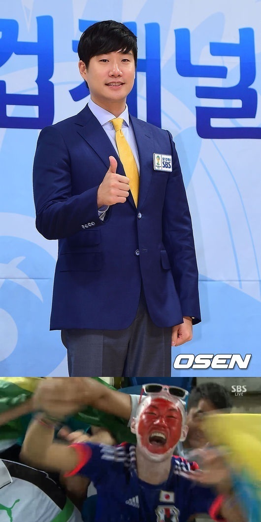 SBS 해설위원 배성재가 전범기를 얼굴에 그린 축구팬에게 일침을 가했다.