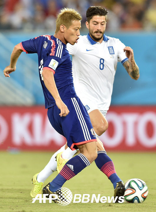 일본 혼다가 패스를 시도하고 있다. / photo@osen.co.kr < 사진 > ⓒAFPBBNews = News1