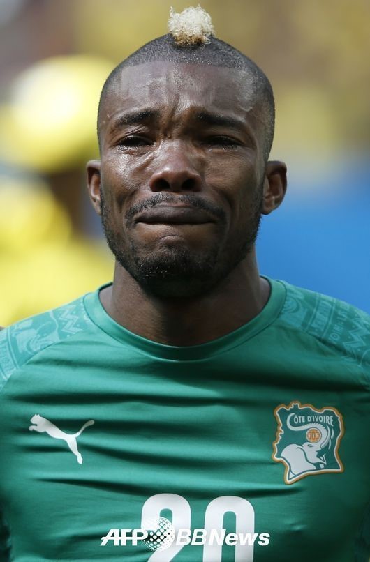 디에는 20일(이하 한국시간) 브라질 에스타디오 나시오날 데 브라질리아에서 열린 콜롬비아와의 C조 조별리그 2차전에서 자국의 코트디부아르 국가가 나오자 감정에 북받쳐 눈물을 훔쳤다.