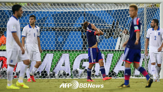 [OSEN=사진팀] 일본이 수적 우세를 살리지 못하고 그리스와 득점없이 비겨 16강 진출에 적신호가 켜졌다.