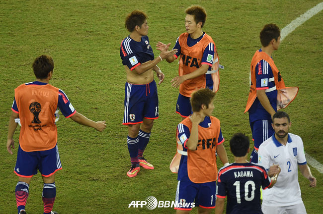 [OSEN=사진팀] 일본이 수적 우세를 살리지 못하고 그리스와 득점없이 비겨 16강 진출에 적신호가 켜졌다.