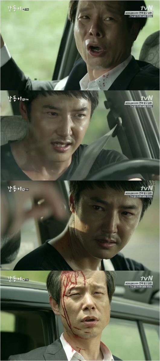 20일 방송된 tvN 금토드라마 ‘갑동이’ 19회는 진짜 갑동이를 잡은 차도혁(정인기 분)의 여죄를 캐기 위해 총을 맞고도 도혁을 끌고 이동하며 압박하는 형사 하무염(윤상현 분)의 마지막 승부가 펼쳐졌다.