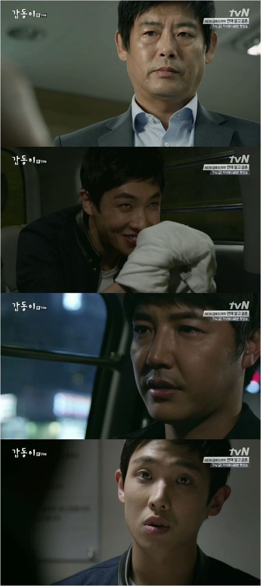 20일 방송된 tvN 금토드라마 ‘갑동이’ 19회는 가짜 갑동이인 모방범 류태오(이준 분)가 오마리아(김민정 분)와 마지울(김지원 분)을 납치하고 산속으로 유인한 후 가위바위보를 하게 해 한 사람만 살려주겠다고 겁박하는 이야기가 그려졌다. 두 사람은 가위바위보를 거부하다가 결국 바꿨다.