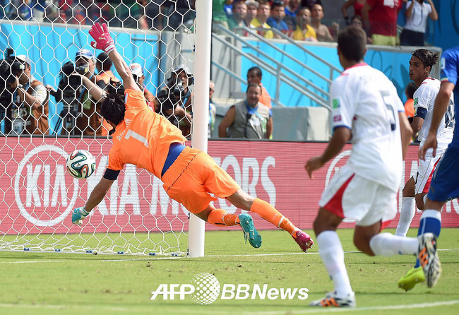 전반 이탈리아 잔루이지 부폰 골키퍼가 코스타리카 브라이언 루이스에게 선제골을 허용하고 있다.