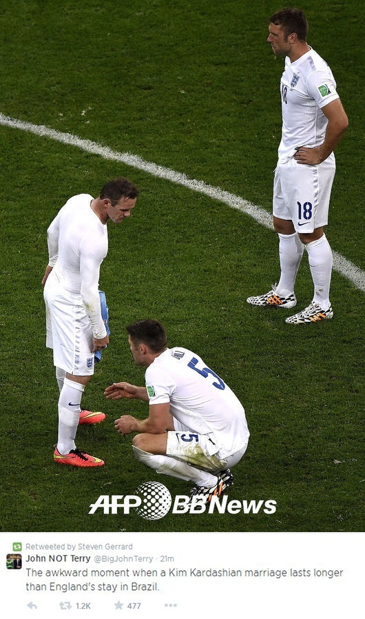이에 테리는 경기가 끝난 후 자신의 트위터를 통해 “킴 카다시안의 결혼이 잉글랜드가 브라질에 머무는 것보다 오래 가다니(the awkward moment when a Kim Kardashian marriage lasts longer than England's stay in Brazil)”라는 글을 게재했다.
