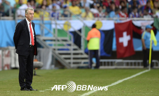 스위스 히츠펠트 감독이 그라운드를 바라보고 있다./photo@osen.co.kr