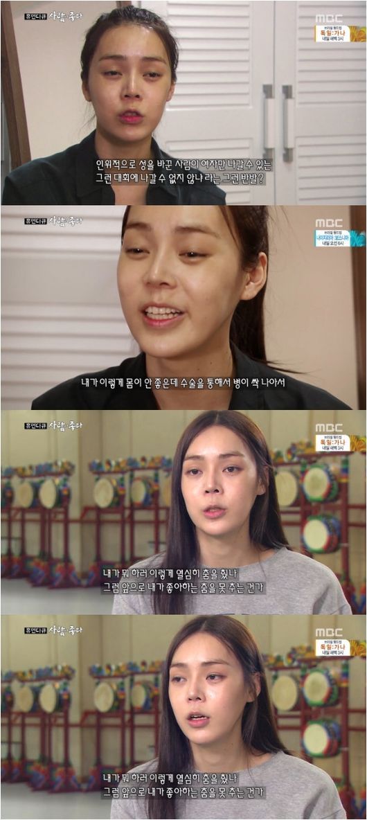 최한빛은 21일 방송된 MBC ‘휴먼다큐 사람이 좋다’에서 슈퍼모델 선발대회에 나간 후 자격 논란이 불거졌던 것에 대해 “사람들이 인위적으로 성을 바꾼 사람이 여자만 나갈 수 있는 대회에 나갈 수 없지 않냐고 반발했다”고 회상했다.