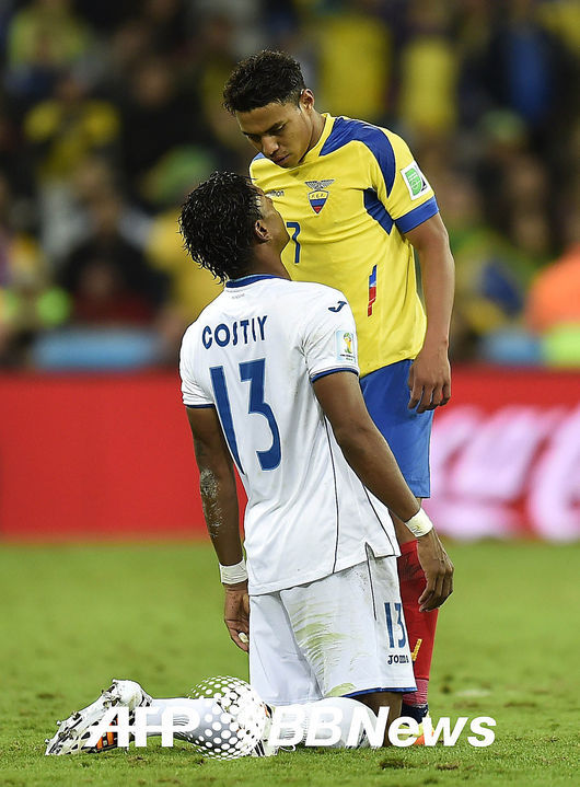 후반 에콰도르 헤페르손 몬테로와 온두라스 카를로 코스틀리가 신경전을 벌이고 있다./photo@osen.co.kr
