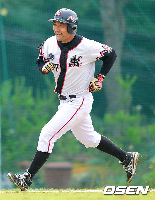 21일 경기도 양평 솔뜰야구장에서 '제5회 니베아맨 컵 전국 생활체육인 야구대회 파라파와 서대전고 동문팀의 경기,4회초 무사 서대전고 동문팀 강정태가 연속타자 홈런을 날리고 베이스를 돌고 있다