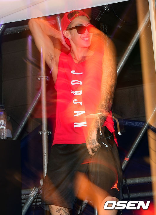 21일 서울 역삼동 나이키 강남 플래그십 스토어에서 진행된 '스니커즈 데이(SNEAKERS’ DAY): 조던 나이트(JORDAN NIGHT)'행사에서 가수 로꼬와 박재범이 축하공연을 펼치고 있다.