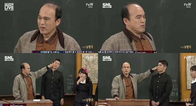 김광규는 21일 오후 방송된 'SNL 코리아'에서 '친구' 속 명장면을 패러디해 웃음을 자아냈다.