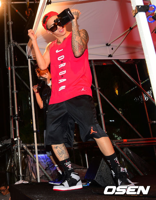 21일 서울 역삼동 나이키 강남 플래그십 스토어에서 진행된 '스니커즈 데이(SNEAKERS’ DAY): 조던 나이트(JORDAN NIGHT)'행사에서 가수 로꼬와 박재범, 그레이가 축하공연을 펼치고 있다.