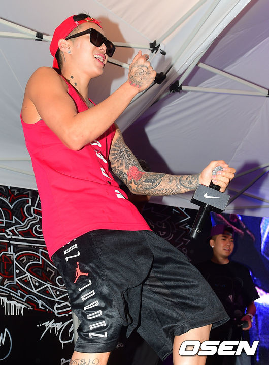 21일 서울 역삼동 나이키 강남 플래그십 스토어에서 진행된 '스니커즈 데이(SNEAKERS’ DAY): 조던 나이트(JORDAN NIGHT)'행사에서 가수 로꼬와 박재범, 그레이가 축하공연을 펼치고 있다.