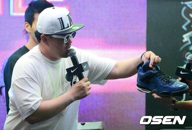 21일 서울 역삼동 나이키 강남 플래그십 스토어에서 진행된 '스니커즈 데이(SNEAKERS’ DAY): 조던 나이트(JORDAN NIGHT)'행사에서 데프콘이 희귀한 조던운동화를 앞에 두고 감탄하고 있다.