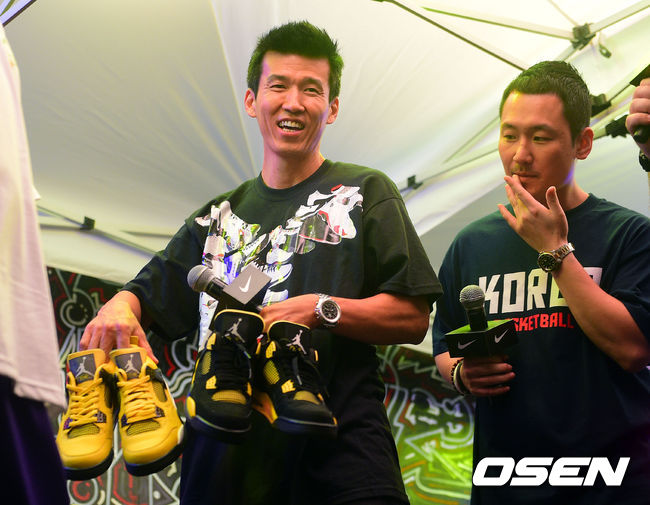 21일 서울 역삼동 나이키 강남 플래그십 스토어에서 진행된 '스니커즈 데이(SNEAKERS’ DAY): 조던 나이트(JORDAN NIGHT)'행사, 스니커즈 배틀행사에 션이 자신의 소장 에어 조던을 소개하고 있다.