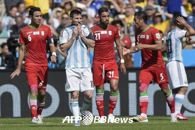 이란은 22일(이하 한국시간) 브라질 벨루오리존치 에스타디오 미네이랑에서 열린 2014 브라질 월드컵 조별리그 F조 2차전 경기에서 아르헨티나에 0-1로 패했다. 아르헨티나는 ‘안티풋볼’로 불리는 이란의 극단적인 수비를 뚫기 위해 노력한 끝에 메시의 결승골로 승리했다. 90분간 골문을 단단히 지켰던 이란은 추가 시간에 무릎을 꿇고 말았다.