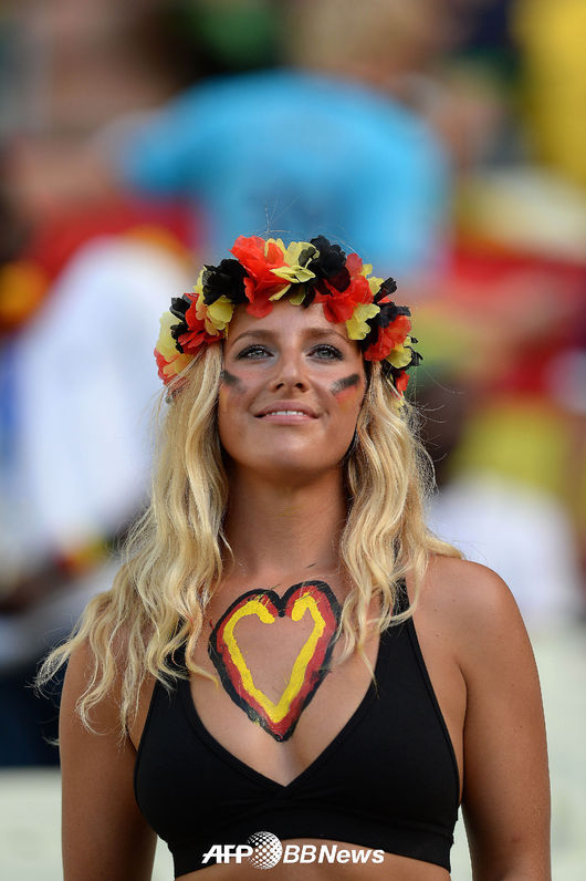 독일 미녀 팬이 그라운드를 바라보고 있다.