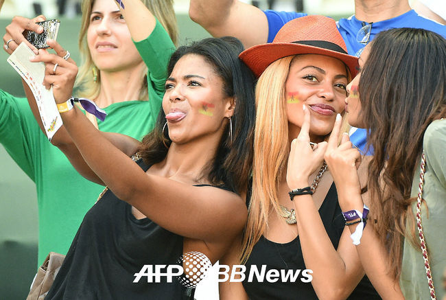 가나 미녀 팬들이 기념사진을 찍고 있다.