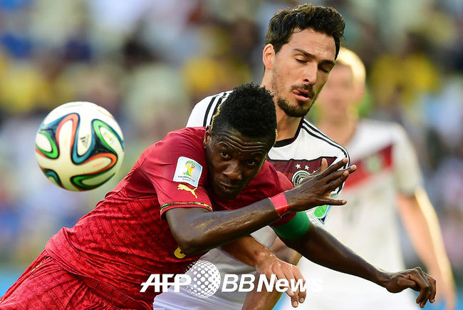 가나 아사모아 기안이 독일 마츠 후멜스와 볼다툼을 벌이고 있다.