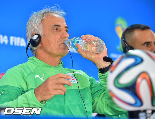 22일 오전(이하 한국시간) 홍명보 감독이 이끄는 축구국가대표팀이 브라질 포르투 알레그리의 에스타디오 베이라 히우 경기장에서 훈련을 가졌다. 인터뷰 중 알제리의 바히드 할리호지치 감독이 물을 마시고 있다.