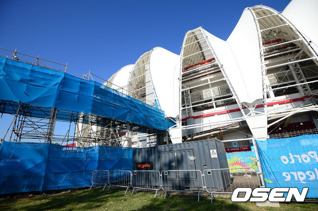 22일 오전(이하 한국시간) 홍명보 감독이 이끄는 축구국가대표팀이 브라질 포르투 알레그리의 에스타디오 베이라 히우 경기장에서 훈련을 가졌다. 에스타디오 베이라 히우 경기장을 연결하는 다리가 한국-알제리전을 하루 앞둔 현재 여전히 공사중이다