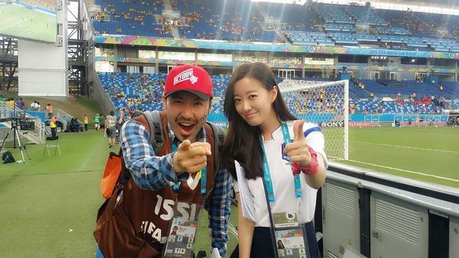 월드컵 기간 동안 브라질 현지에서 대표팀 소식 및 경기 하이라이트를 전해주고 있는 이재은 아나운서는 러시아와의 결전이 있던 지난 18일 경기를 앞두고 생방송 리포트를 준비하는 도중 노홍철을 만났다.