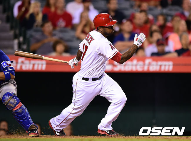 연장 10회말 무사 1루 에인절스 켄드릭이 끝내기 안타를 때리고 있다./youngrae@osen.co.kr