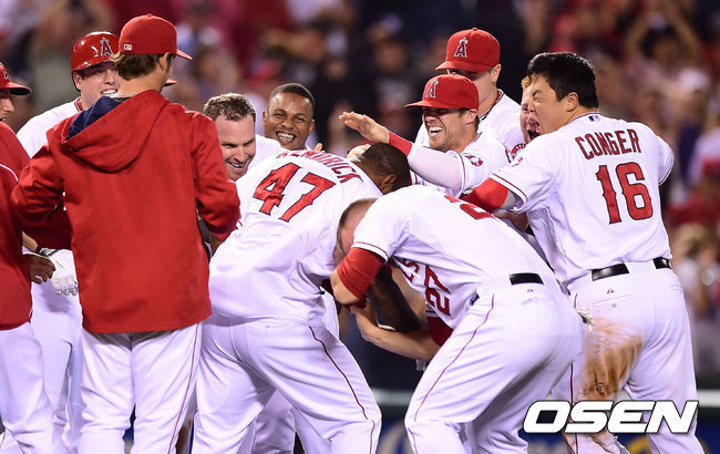 에인절스에서 뛰고 있는 한국계 행크 콩거(한국명 최현)는 이날 포수 마스크를 쓰고 7번 타자로 선발 출장, 2루타 포함 3타수 2안타 1득점으로 활약했다.