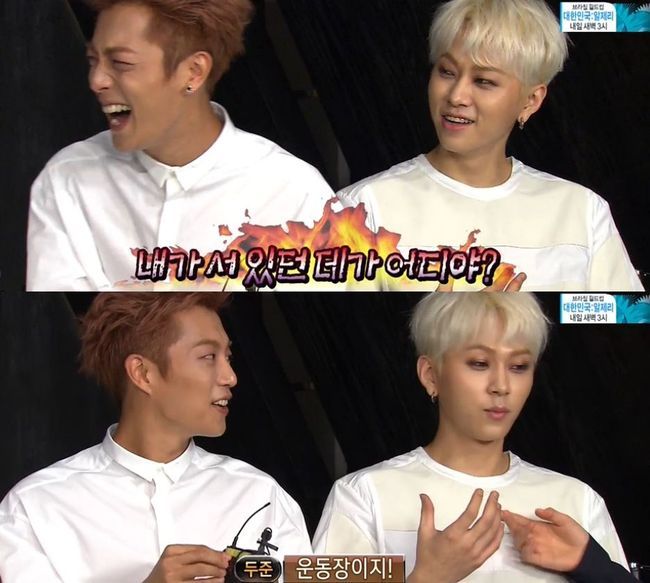 이에 용준형은 옆의 윤두준에게 자신이 미드필더냐고 확인하며 "내가 서 있던 곳이 어디야?"라고 물어 큰 웃음을 자아냈다. 윤두준은 "운동장이다"라고 대답하며 크게 웃었다.