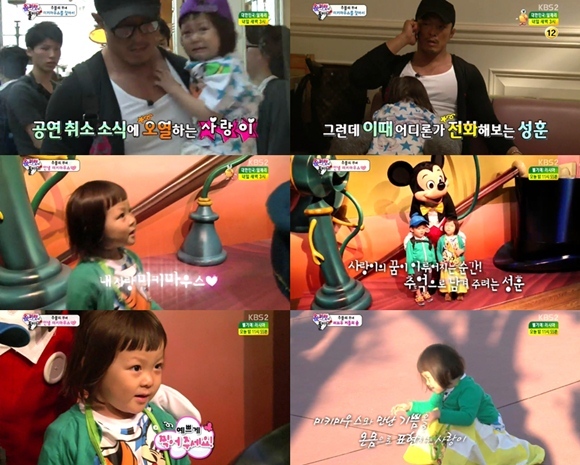 결국 추성훈은 어디론가 전화를 했고, 사랑은 실내에서 꿈에 그리던 미키마우스를 만날 수 있게 됐다. 미키마우스를 만난 사랑은 울었던 적이 없다는 듯 밝게 웃으면 행복해하는 모습을 보여줘 눈길을 끌었다.