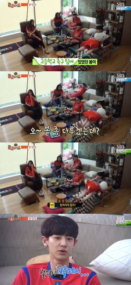 찬열은 22일 오후 방송된 SBS '일요일이 좋다-룸메이트'(이하 '룸메이트')에서 고등학생 시절 축구팀에 있었다는 박봄에게 "별명이 박메시였다고.."라고 이야기해 웃음을 자아냈다.