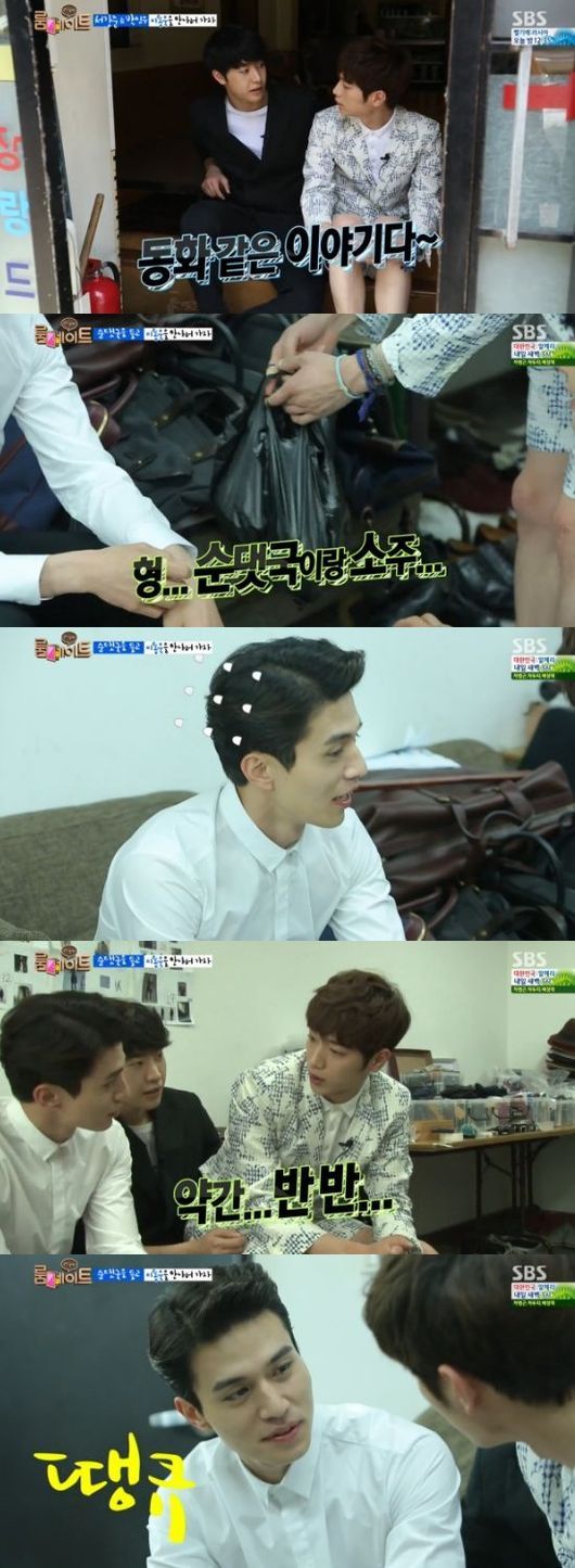박민우, 서강준은 22일 오후 방송된 SBS '일요일이 좋다-룸메이트'(이하 '룸메이트')에서 광고촬영장의 이동욱을 찾아가기 위해 순댓국과 소주를 준비했다.