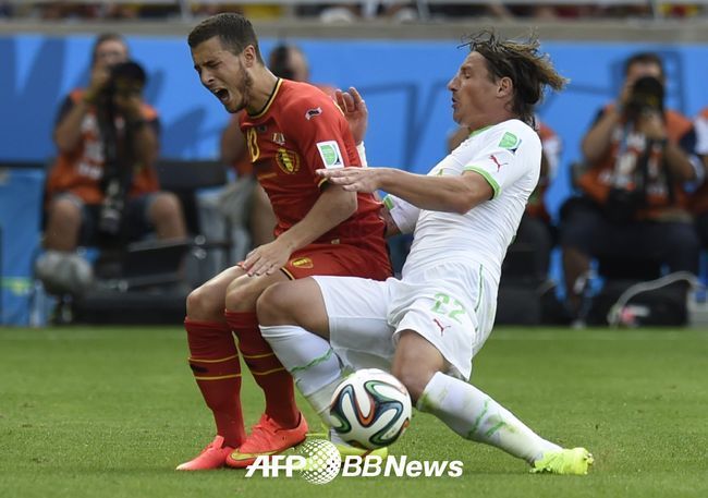 아자르는 자신의 월드컵 첫 경기였던 지난 18일(이하 한국시간) 알제리와 2014 브라질월드컵 H조 조별리그 1차전서 총 5회의 반칙을 당했다. 알제리 선수들은 개인기가 좋은 벨기에의 '에이스' 아자르를 향해 거친 태클을 서슴지 않았다. 아자르는 이날 경기 이후 엄지발가락에 통증을 호소했지만 정밀 검진 결과 단순 타박상으로 밝혀져 시름을 놓았다.