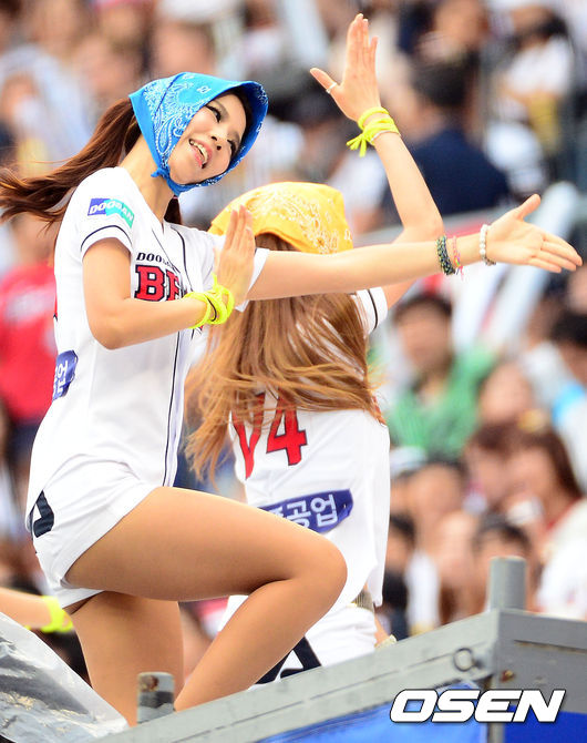 두산 치어리더들이 힘찬 응원을 펼치고 있다.
