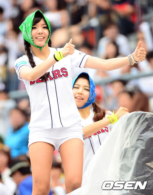 두산 치어리들이 힘찬 응원을 펼치고 있다.