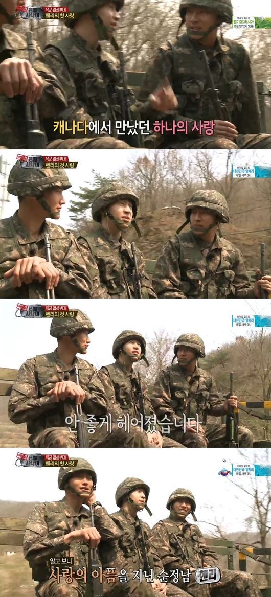 헨리는 22일 오후 방송된 MBC 예능프로그램 '일밤-진짜사나이'(이하 '진짜사나이')에서 GOP근무를 마치고 이동 중 "여친이랑 이런 데 오고 싶다, 여자친구 있으면 오고 싶다"고 말문을 열었다.