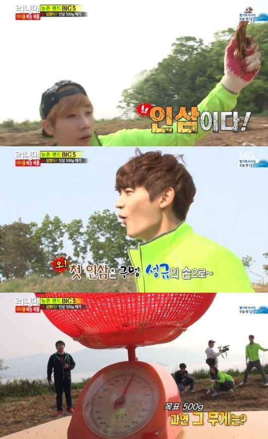 그룹 인피니트 성규가 인삼 캐기 미션에서 첫 성공 주인공이 됐다.